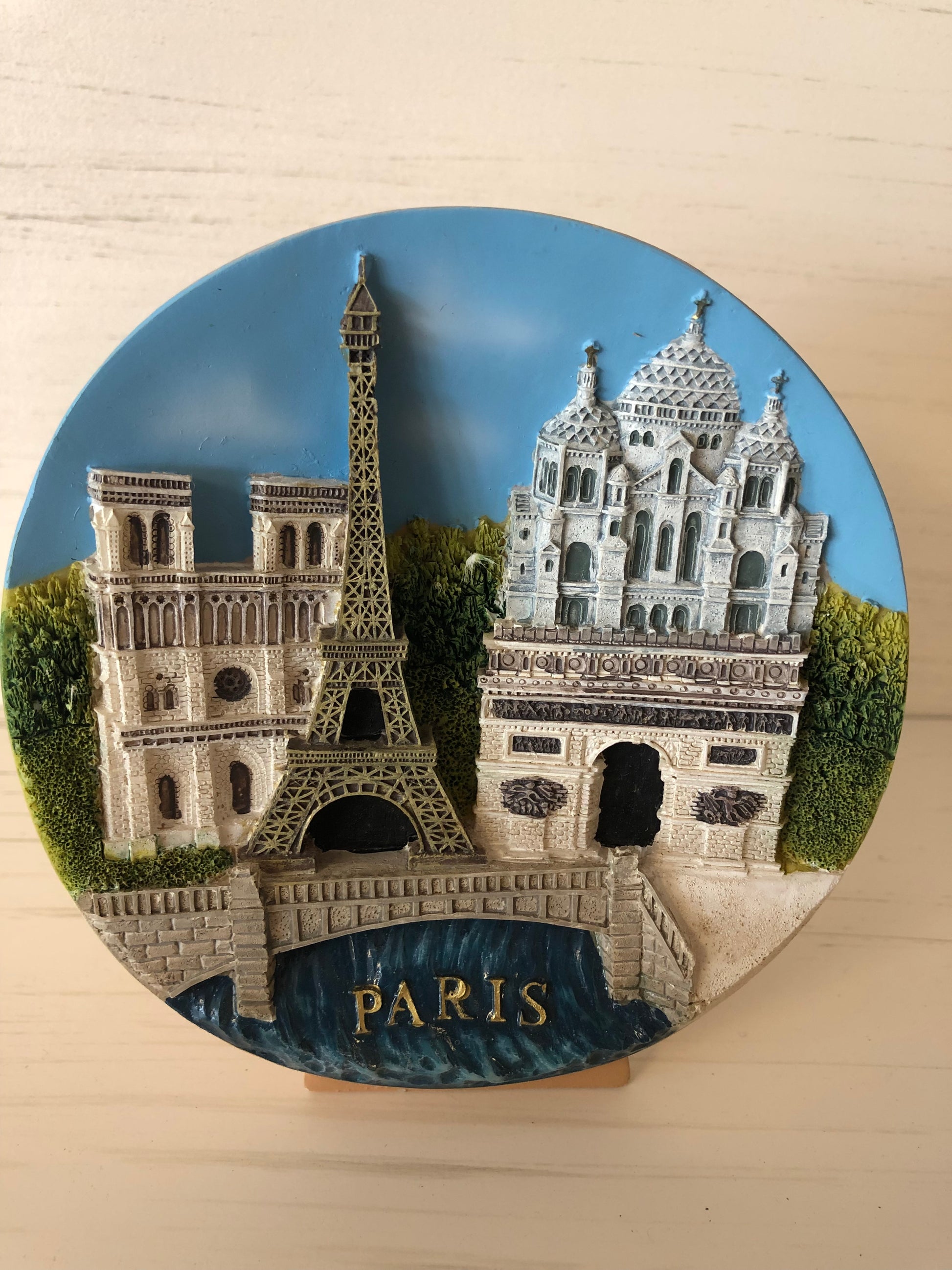 This curious little piece of Parisian decor measures 4” in diameter and is made of resin.