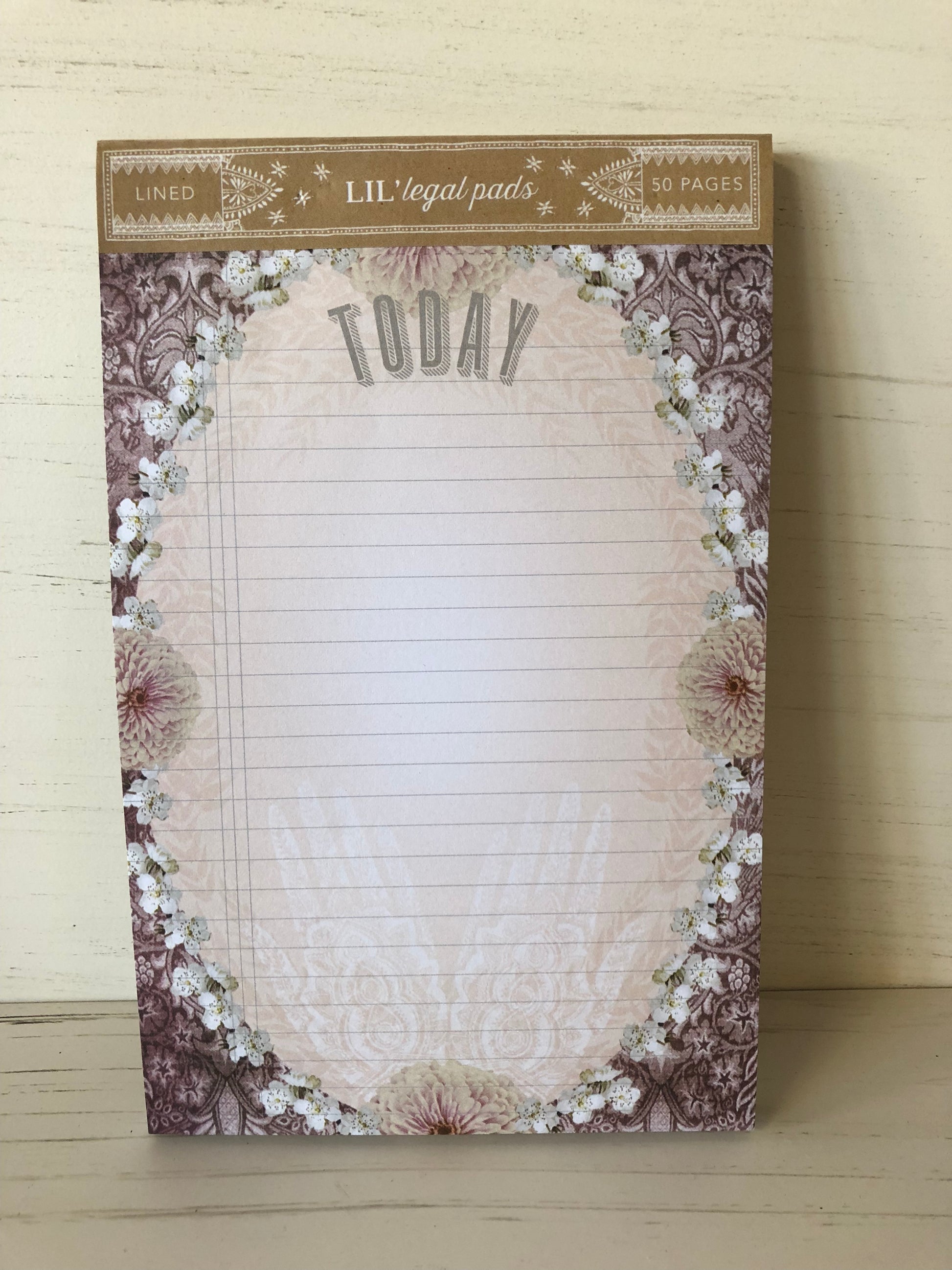 The baby version of our Legal Pads, these decorative notepads are sweet for short messages and thoughts. Measures 6.75” x 4.25”. 50 sheets, identical artwork on each side.