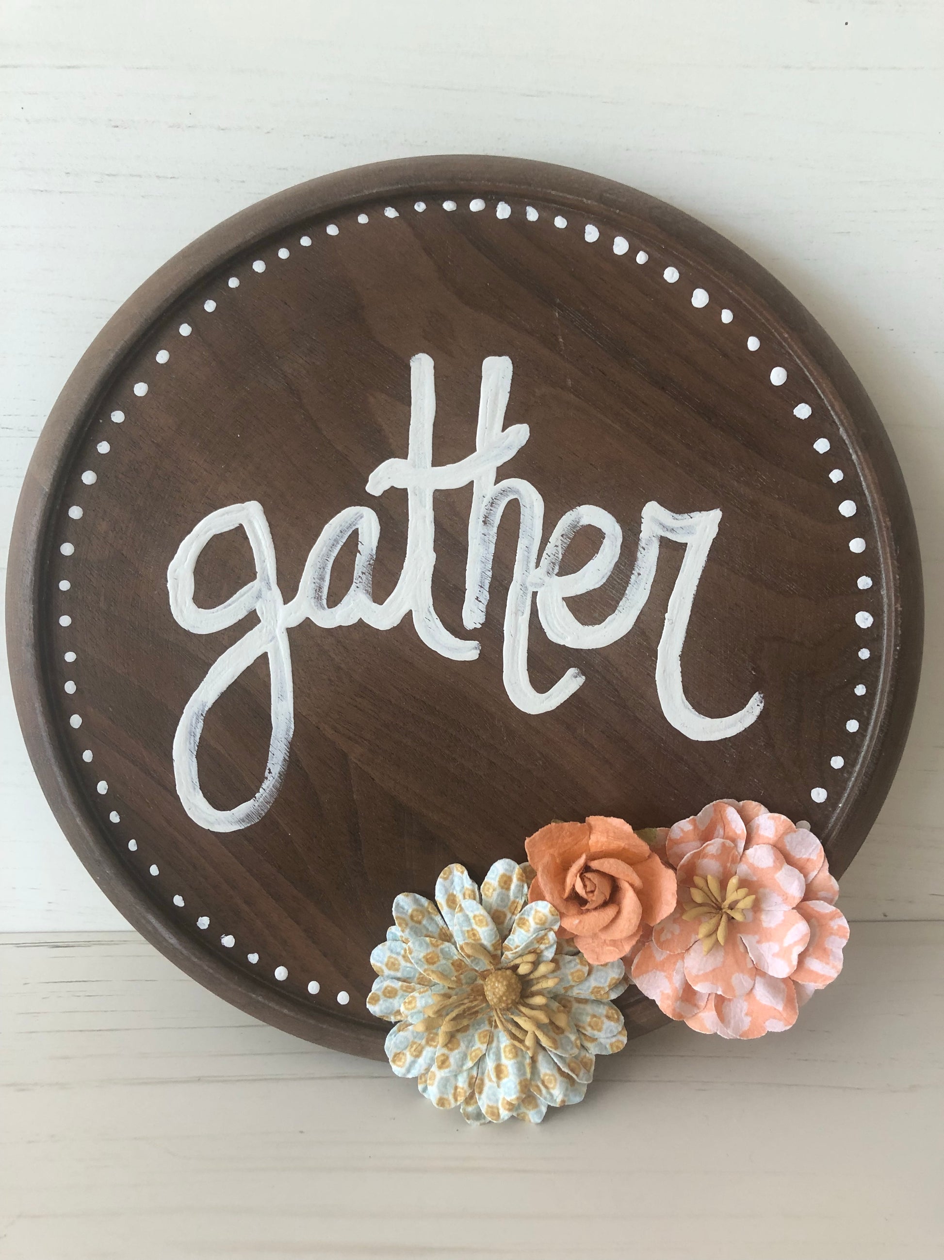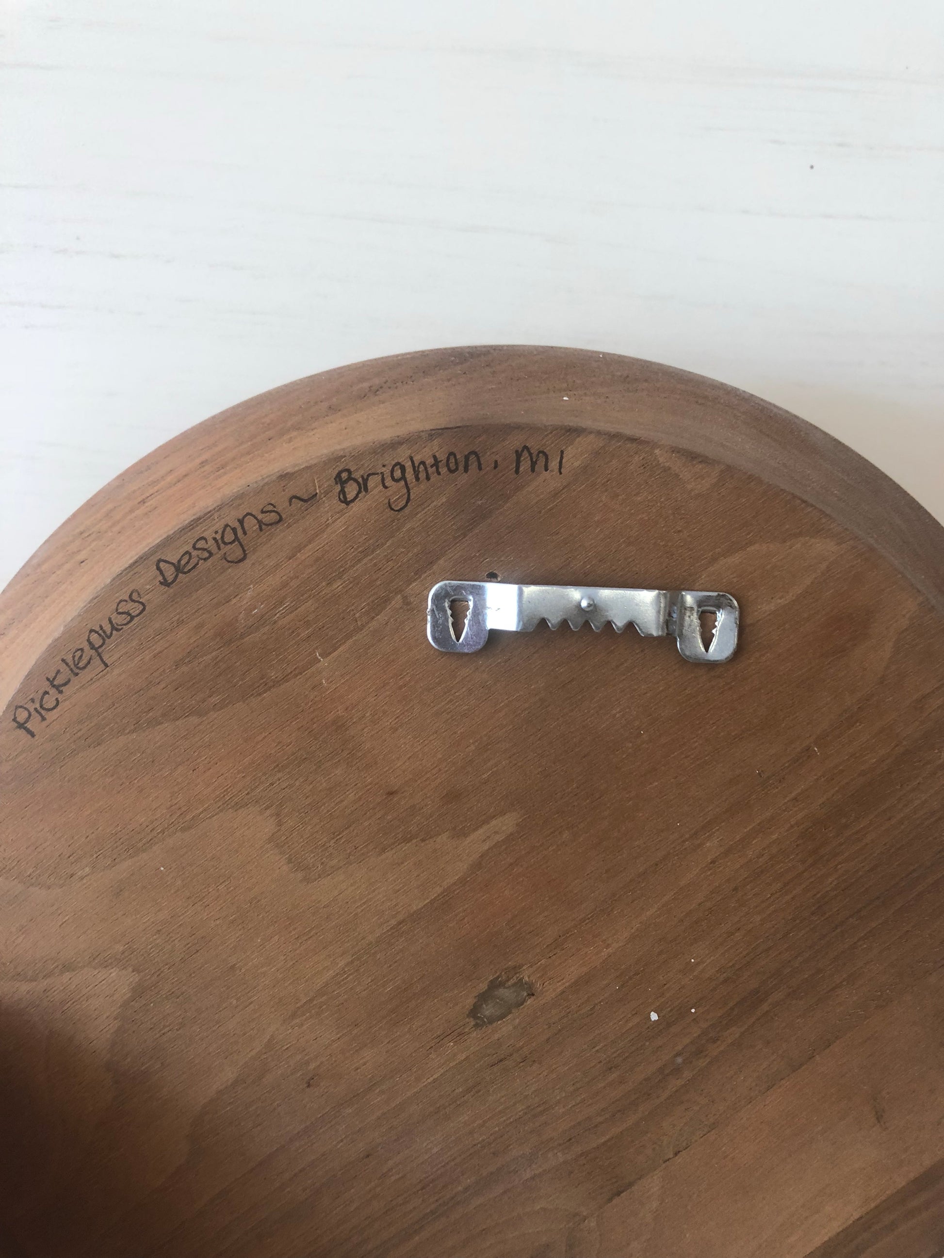 Hand painted with everyone’s favorite word for coziness!! Sawtooth hanger on the back. Measures 7.5” diameter.